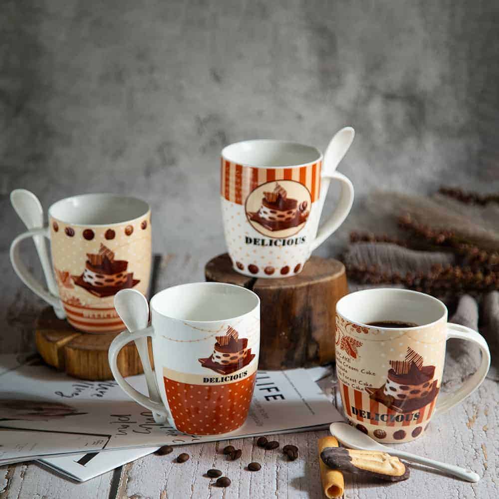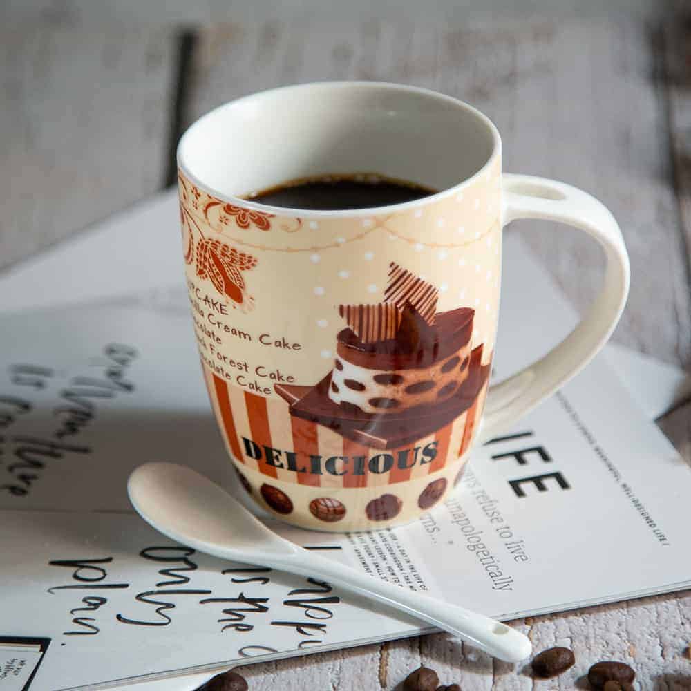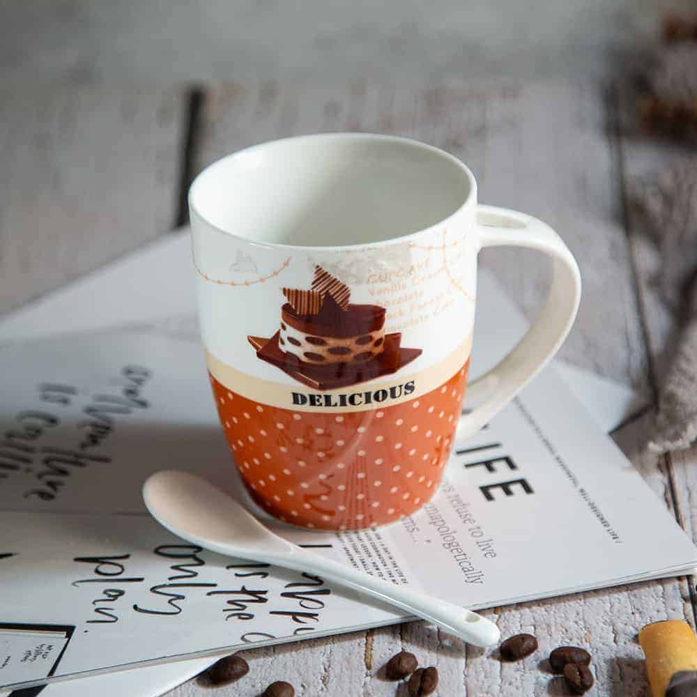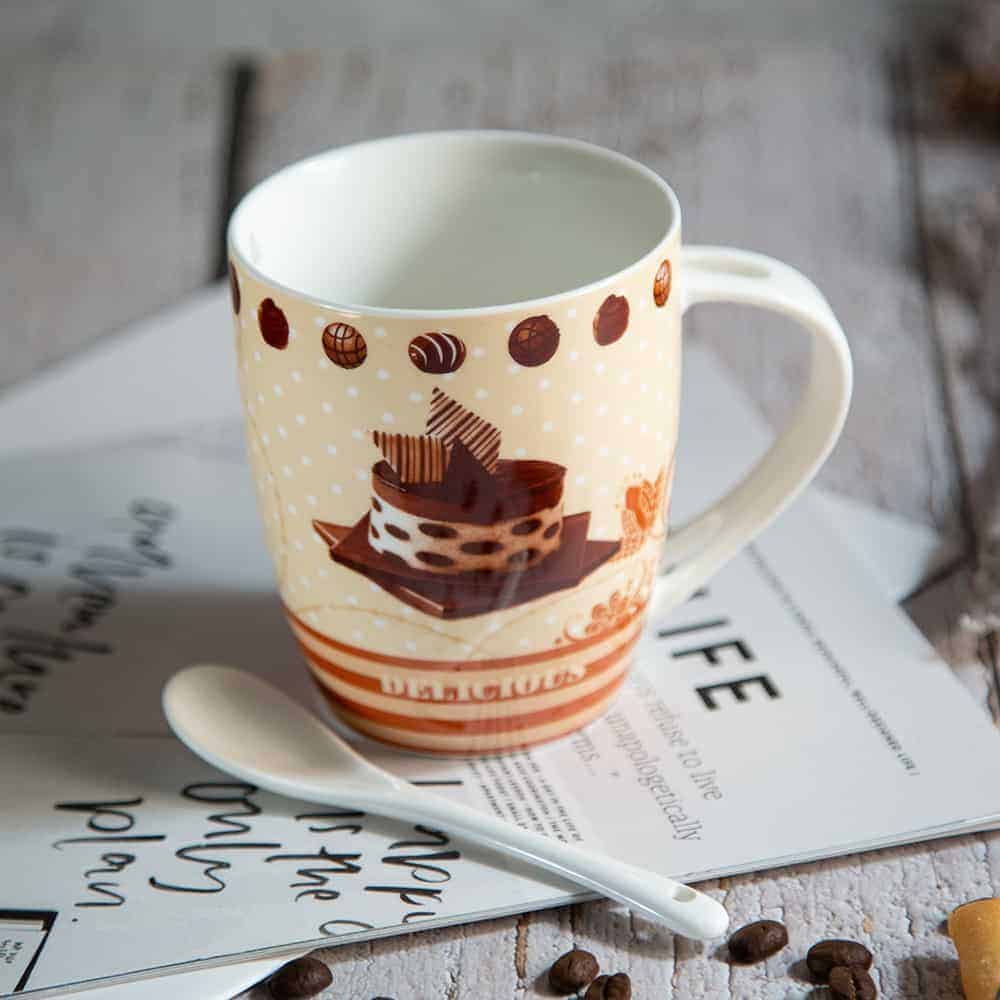 The ‘Cake’ Mug comes with a porcelain spoon. Available in four different designs and an original coloured package. Please indicate your choice when ordering.
