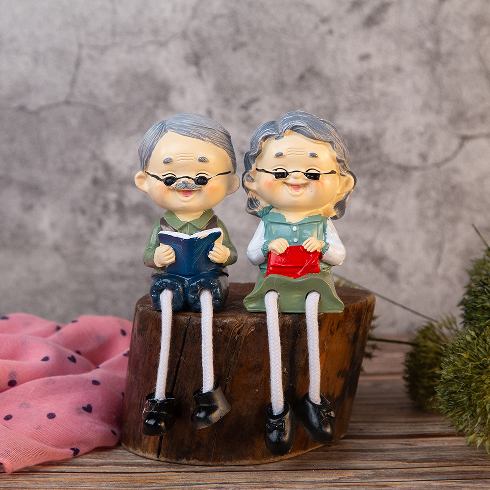 Decorative - grandmother or grandfather with hanging legs, made of polyresin with detailed painted elements. Dimensions 22*11cm. Specify your choice when ordering!