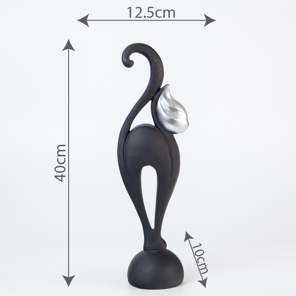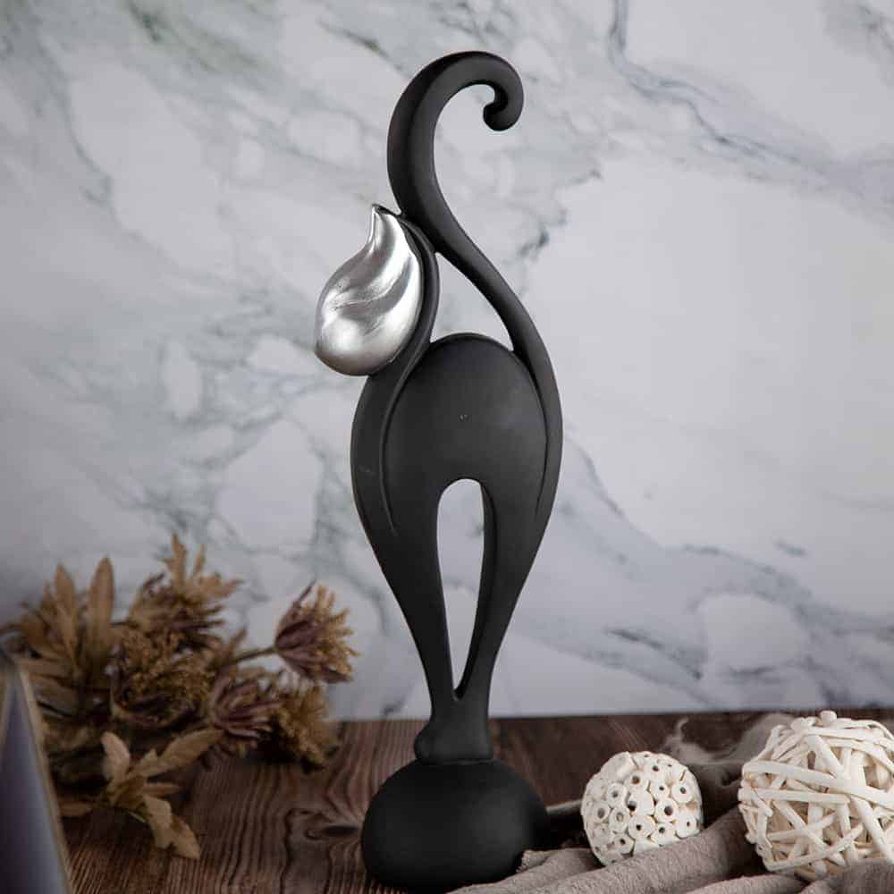 Decorative statuette - Cat in black with raised tail. In China, they are a symbol of longevity and are considered harbingers of happiness. Protects the home from negative energy and evil eyes. Suitable gift for newcomers.