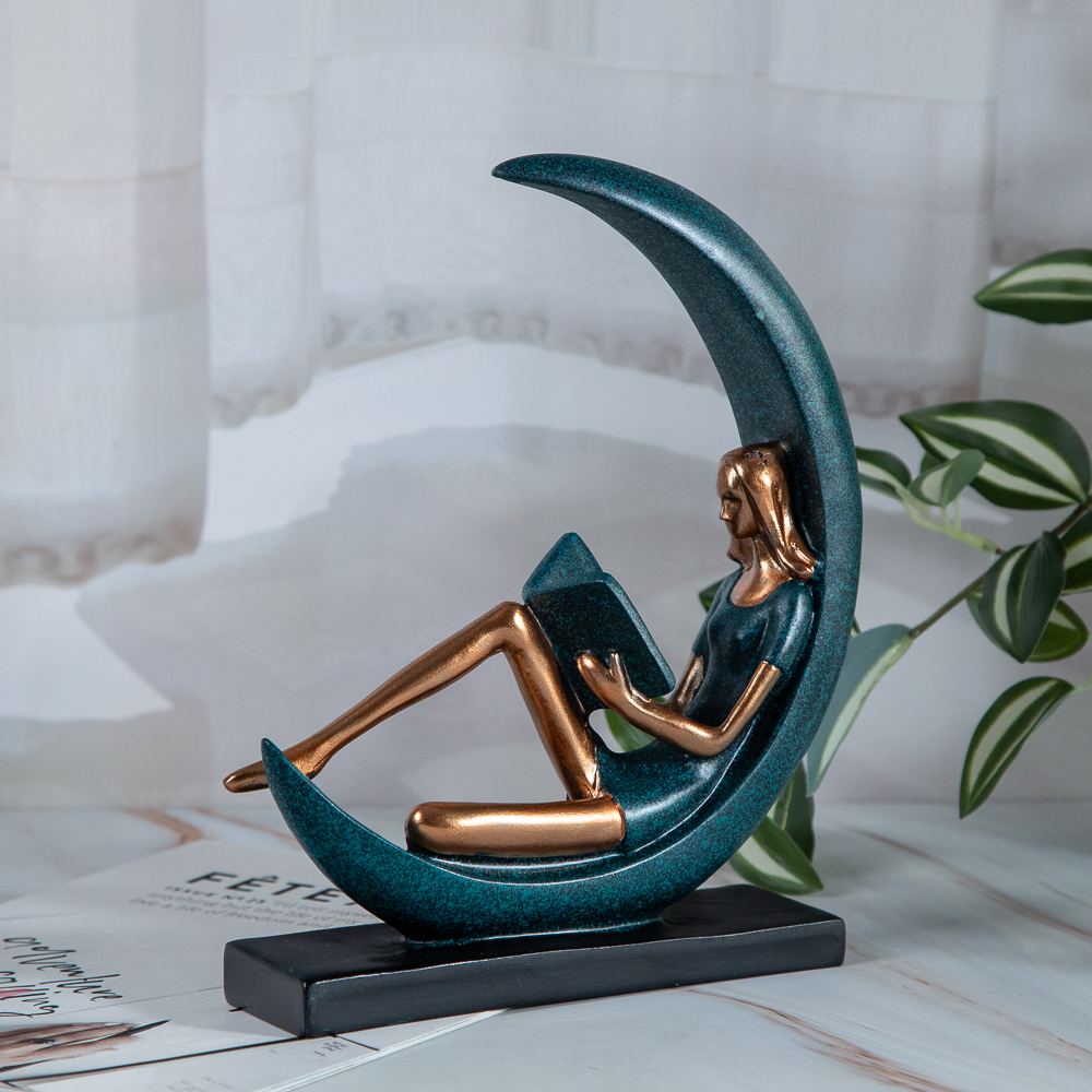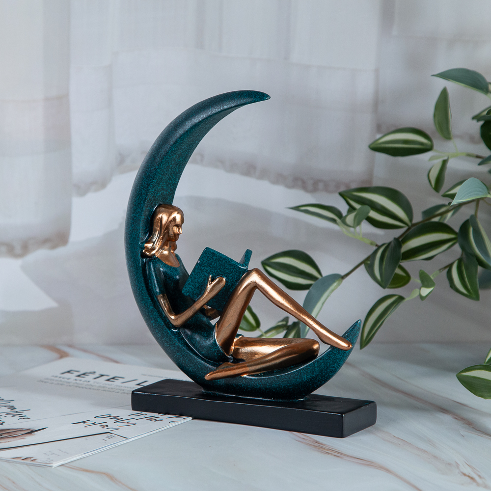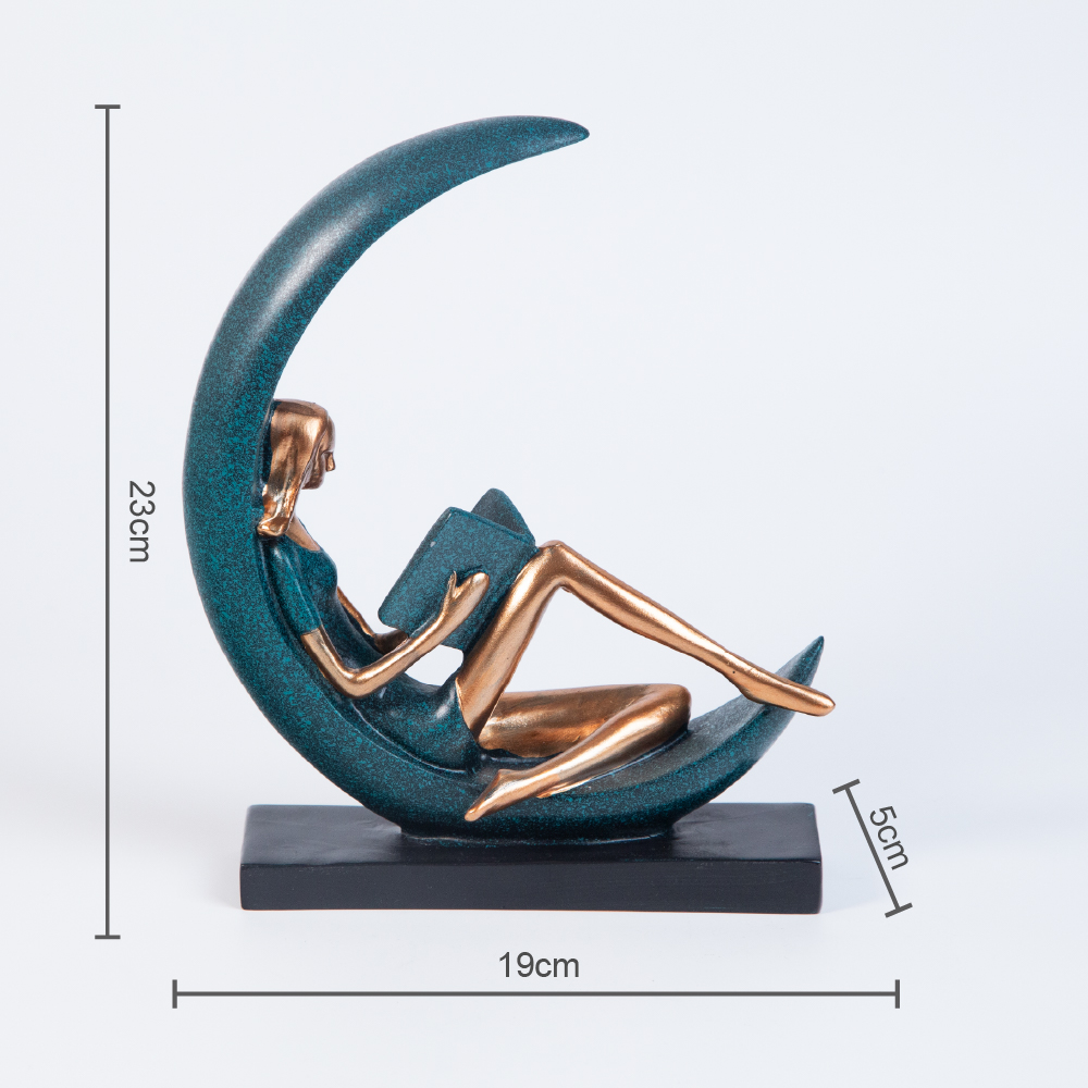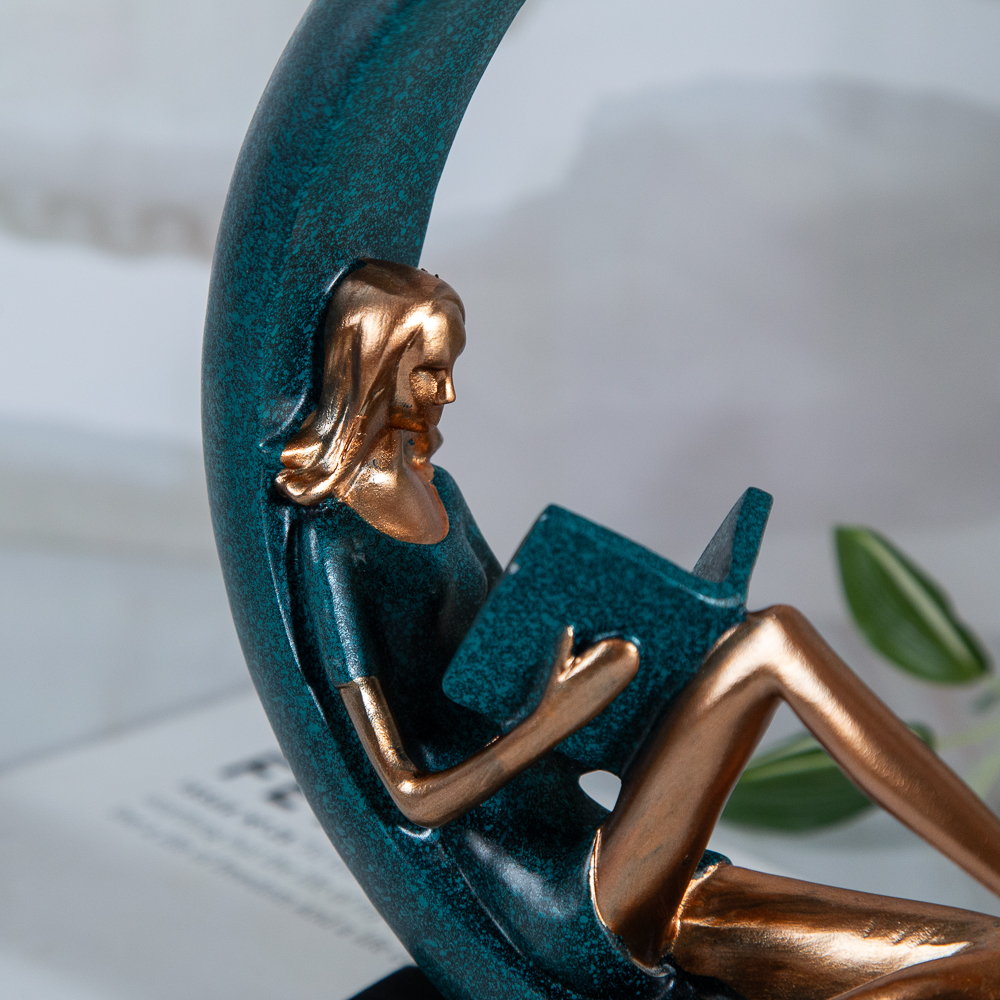 The figurine expresses an inspiring moment of solitude and wisdom. This symbol of knowledge and reflection sits in the center of a fixed moon-shaped base. The figurine combines beautiful design, grace and meaning, creating a harmonious view of the relationship between man and knowledge.
