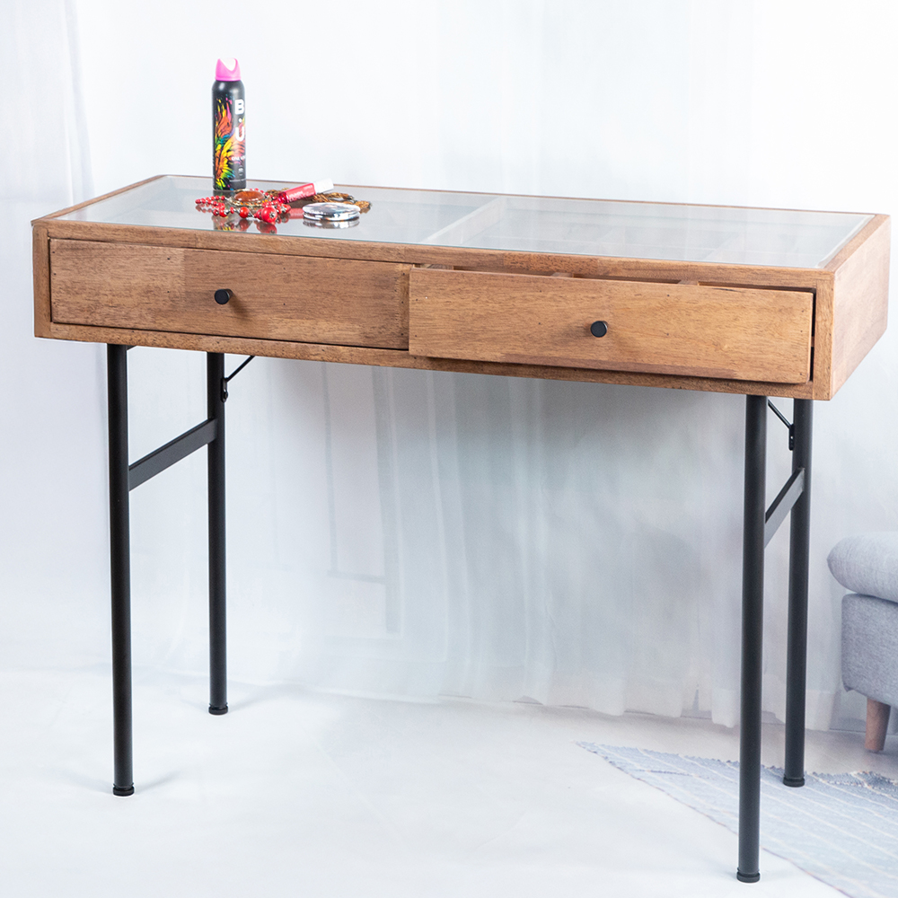dressing table is equipped with two drawers suitable for organizing cosmetics
