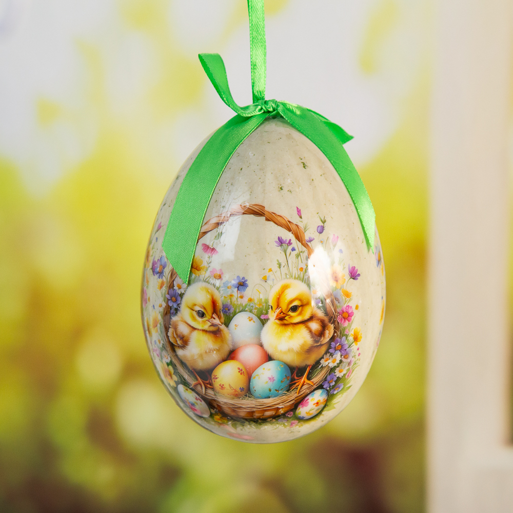 Charming Easter egg with cheerful designs for Easter decoration that will add a touch of extra festive atmosphere to the home.