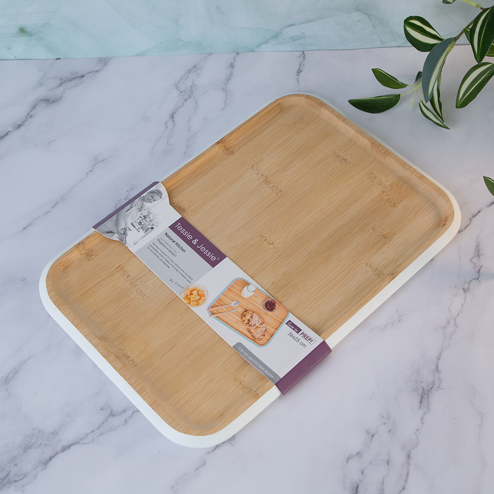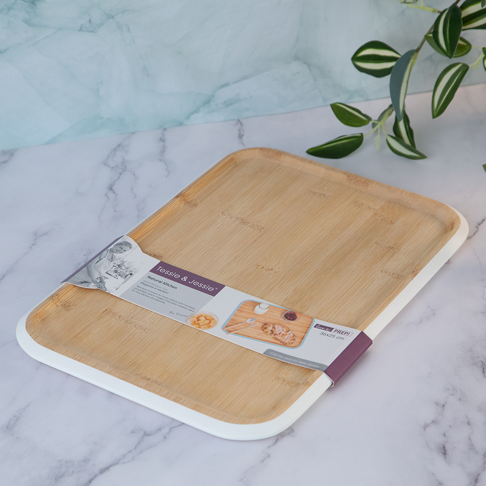 Create comfort and style in the kitchen with this cutting board. Made of strong and durable material, it provides space for cutting a variety of food products.