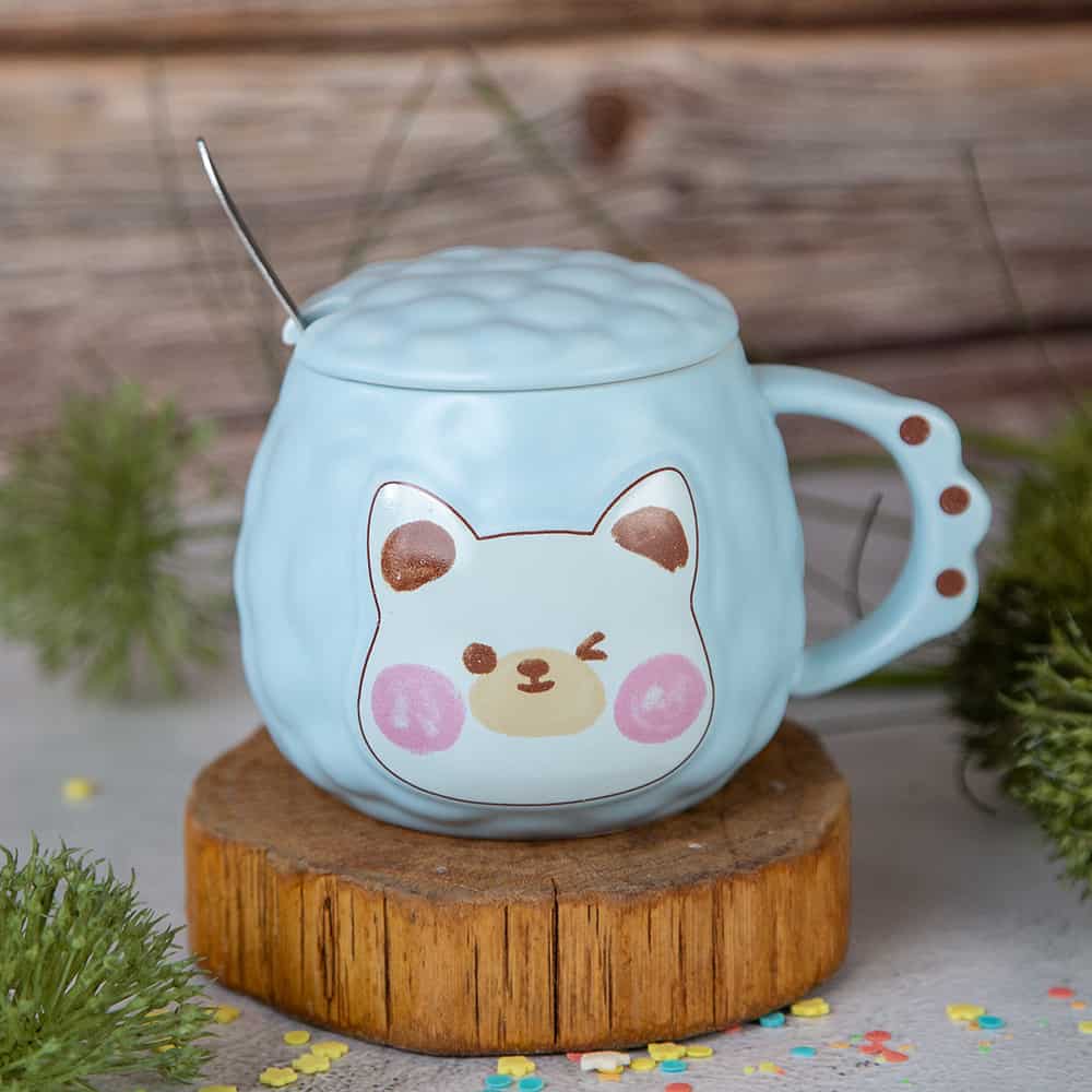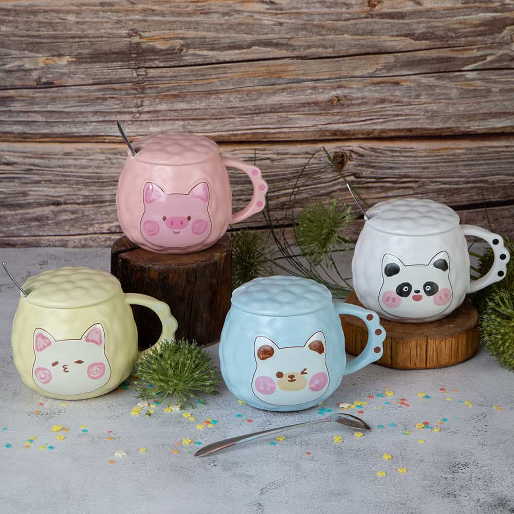 Gift mug "Animals" with cover and metal spoon. Available in several different variants. Please select your preference when ordering.