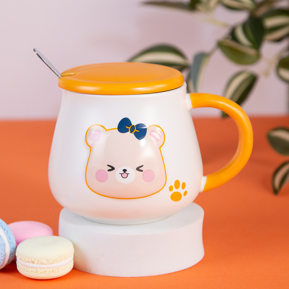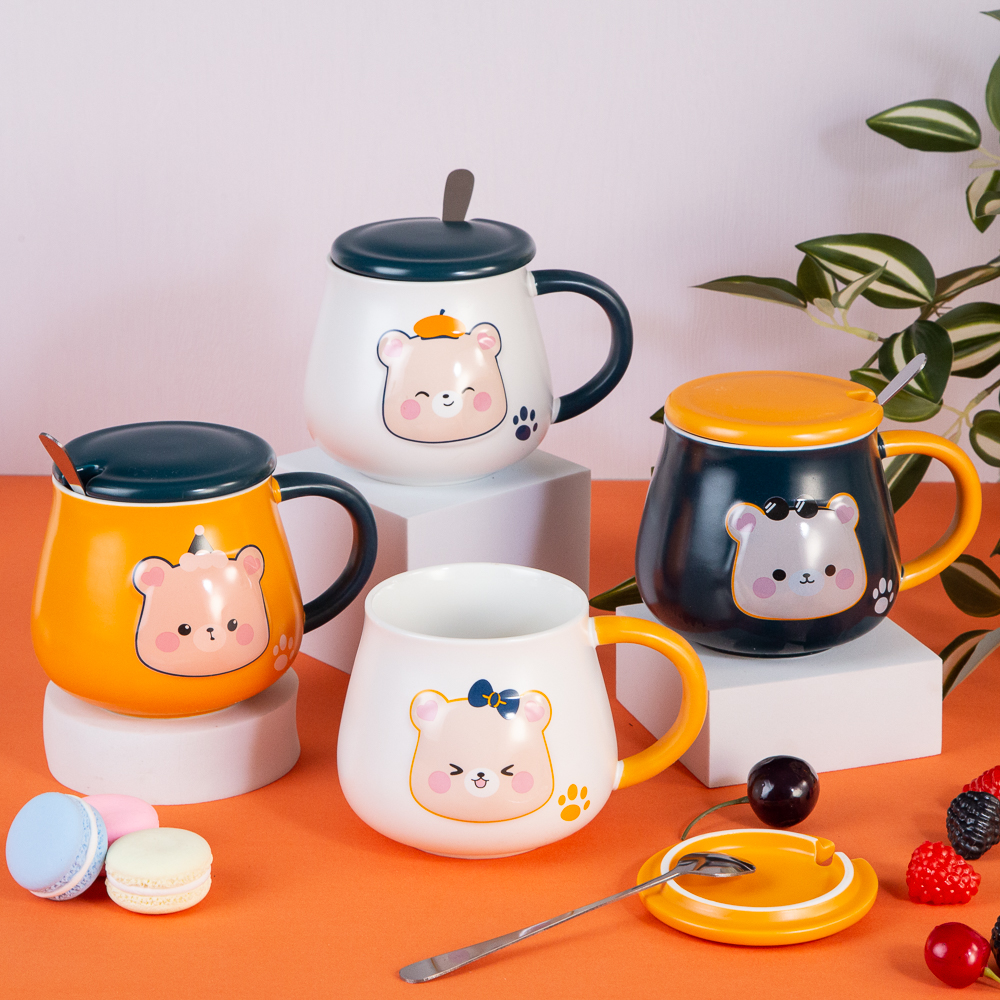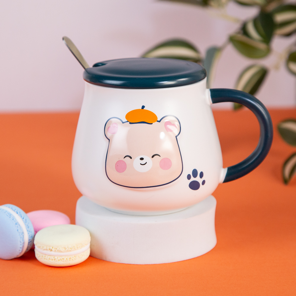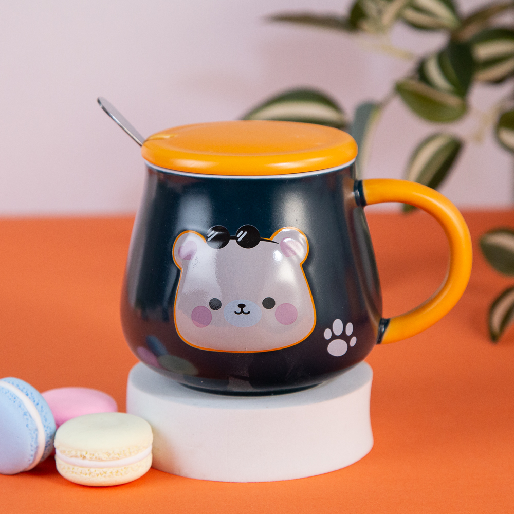 The bear cub mug features an adorable design. With a lid and a spoon, it's ideal for enjoying tea or coffee and will make you smile with every sip. Available in various variations. Specify your choice when ordering.
