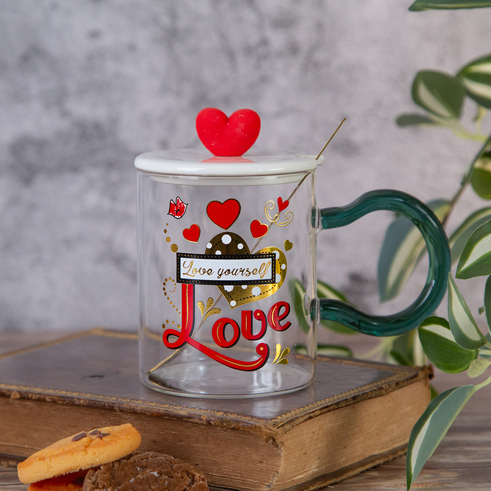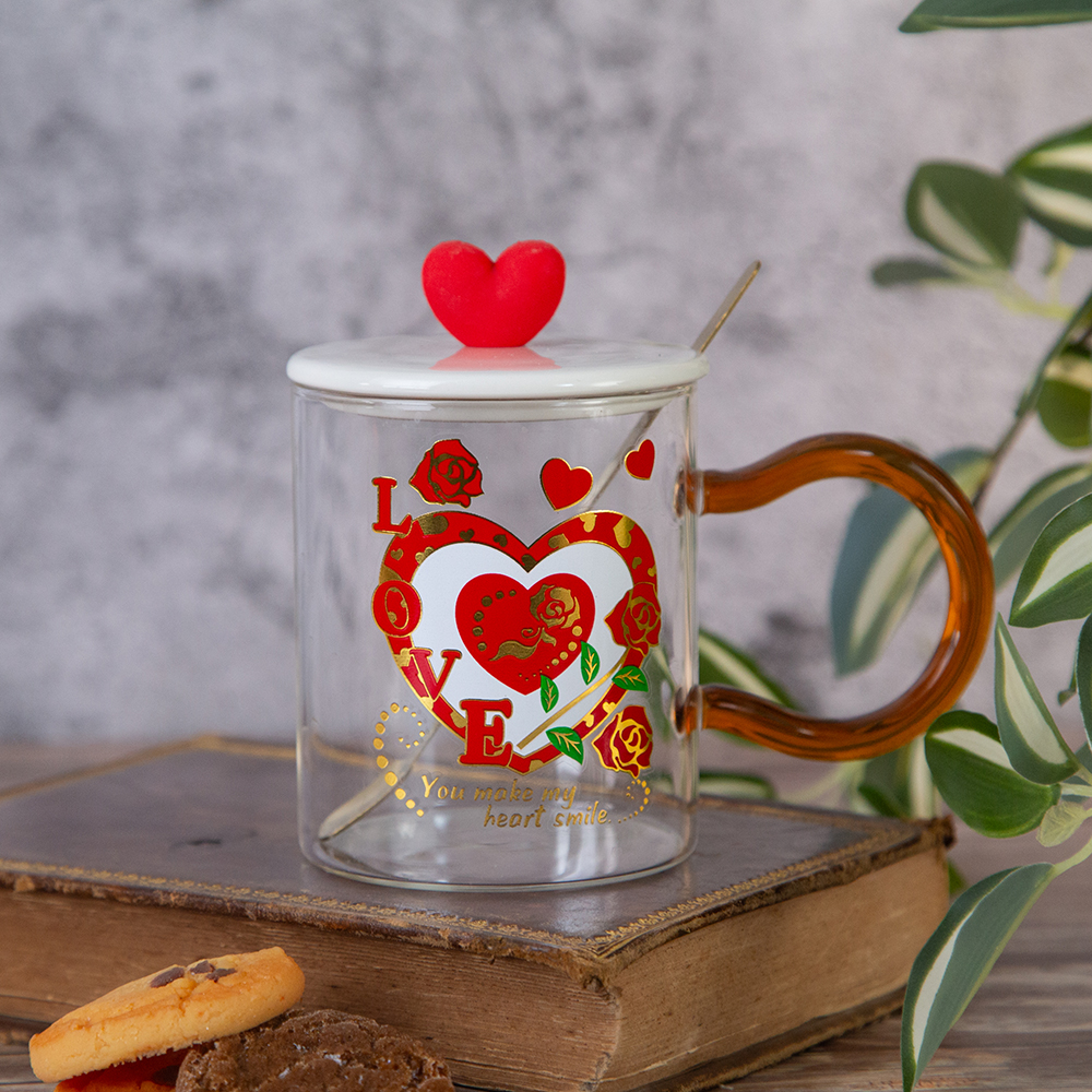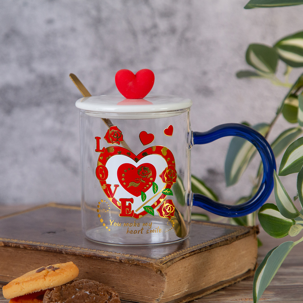 The mug with lid and spoon is a wonderful and practical gift that brings a romantic spirit and combines aesthetics and convenience. Specify your choice when ordering.