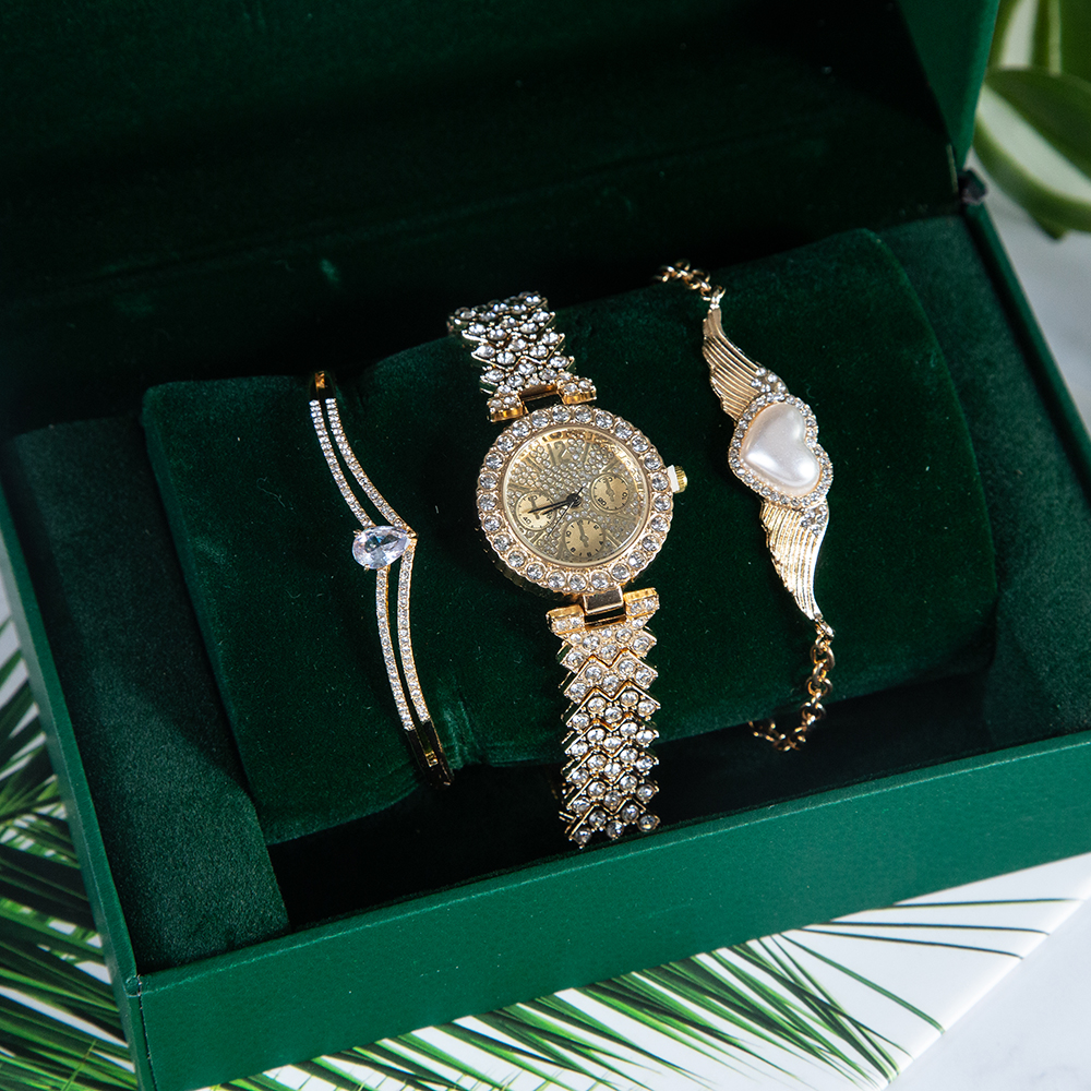 This sophisticated gift set includes a watch and elegant bracelet that complement each other perfectly. The watch offers a combination of precision and modern design, while the bracelet adds elegance and charm to any look. The set is suitable for every lady who appreciates quality and stylish accessories. A wonderful gift choice that will impress and delight.