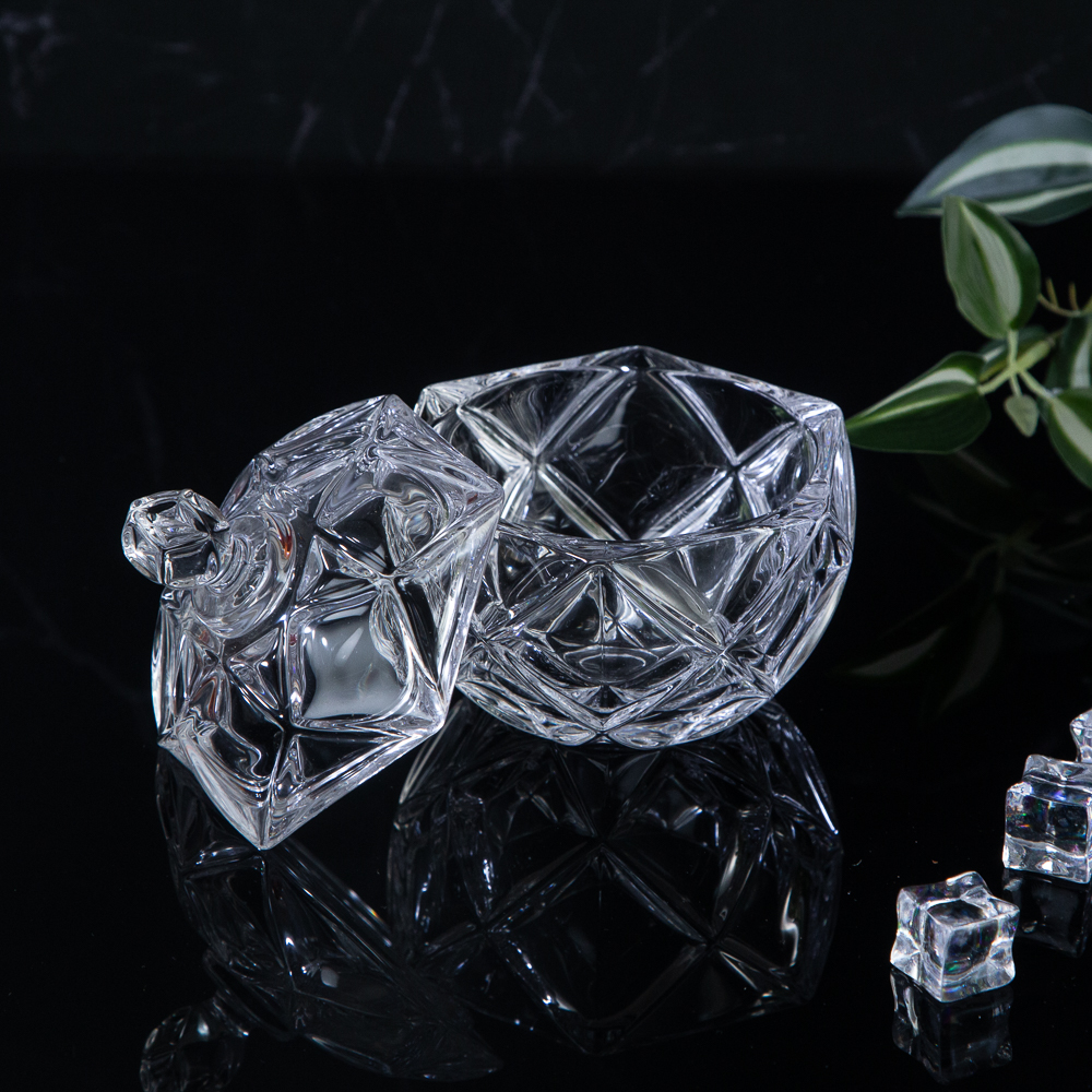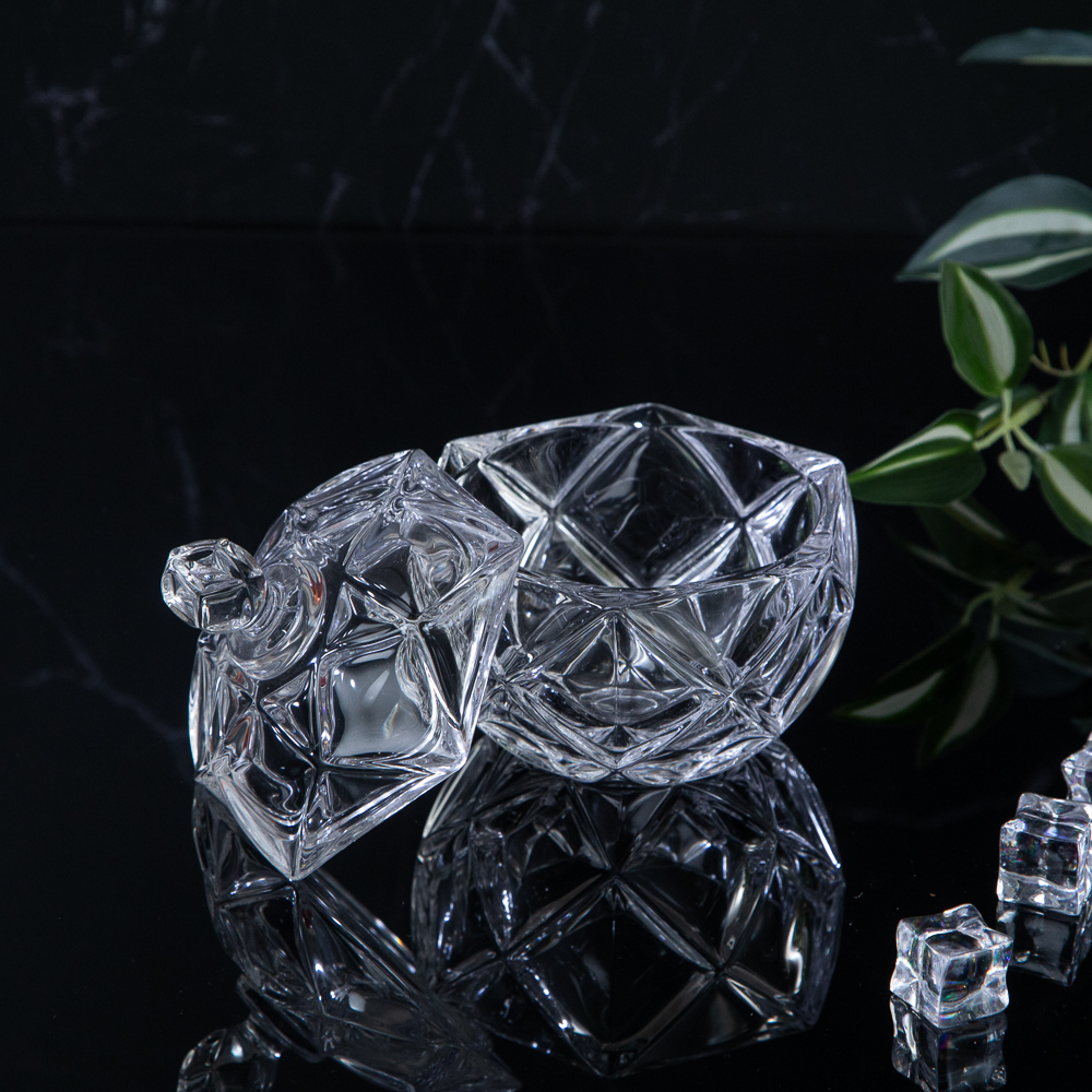 Add sparkle to your table with the "Diamond" glass sugar bowl. Its unique shape and clear glass design add luxury and style to any kitchen, ideal for everyday use or special occasions.