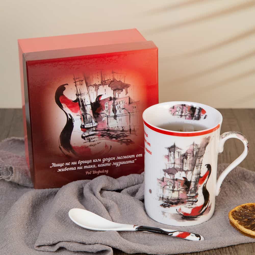 This cup with an image of a guitar and the inspiring quote by Rob Sheffield: "Nothing returns us to a moment in our lives like music" is the ideal gift for music lovers and music enthusiasts. Presented in a luxurious gift box.