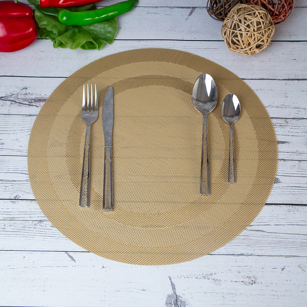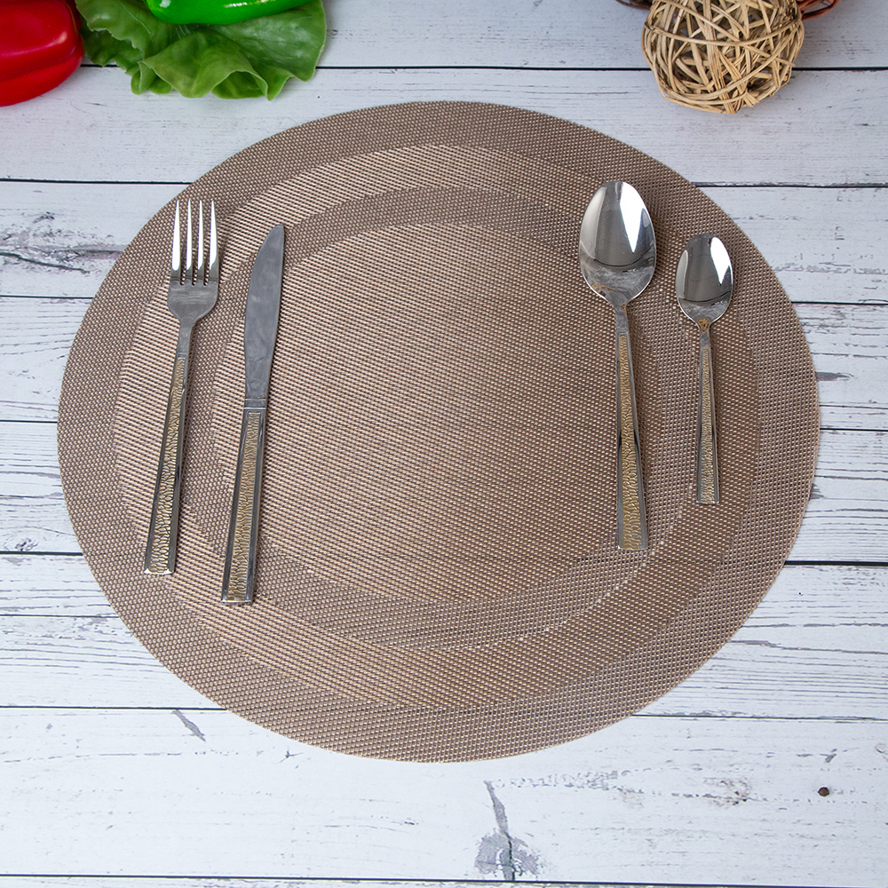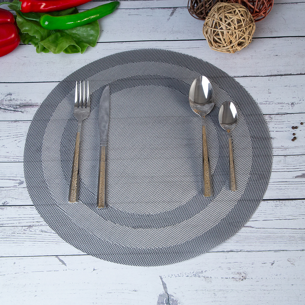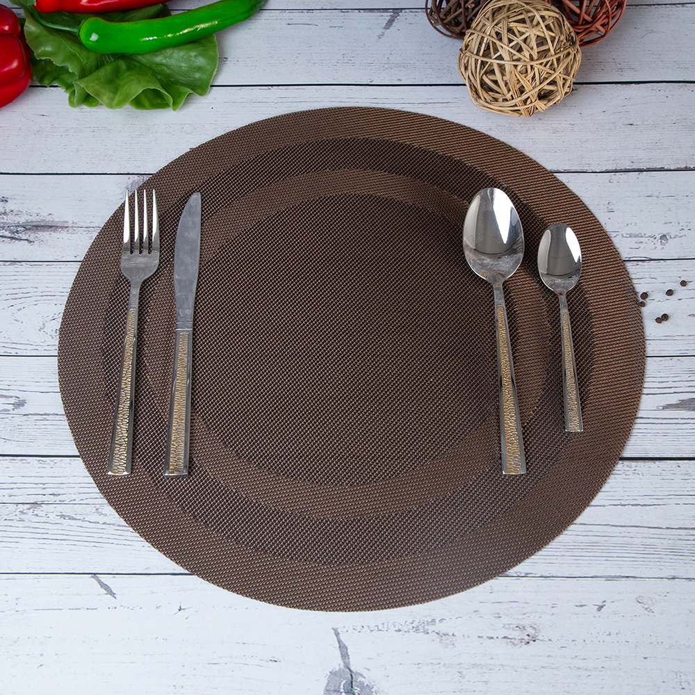 Round practical coaster for modern and classic interiors. Provides protection and beauty to your table. The set includes four coasters.
