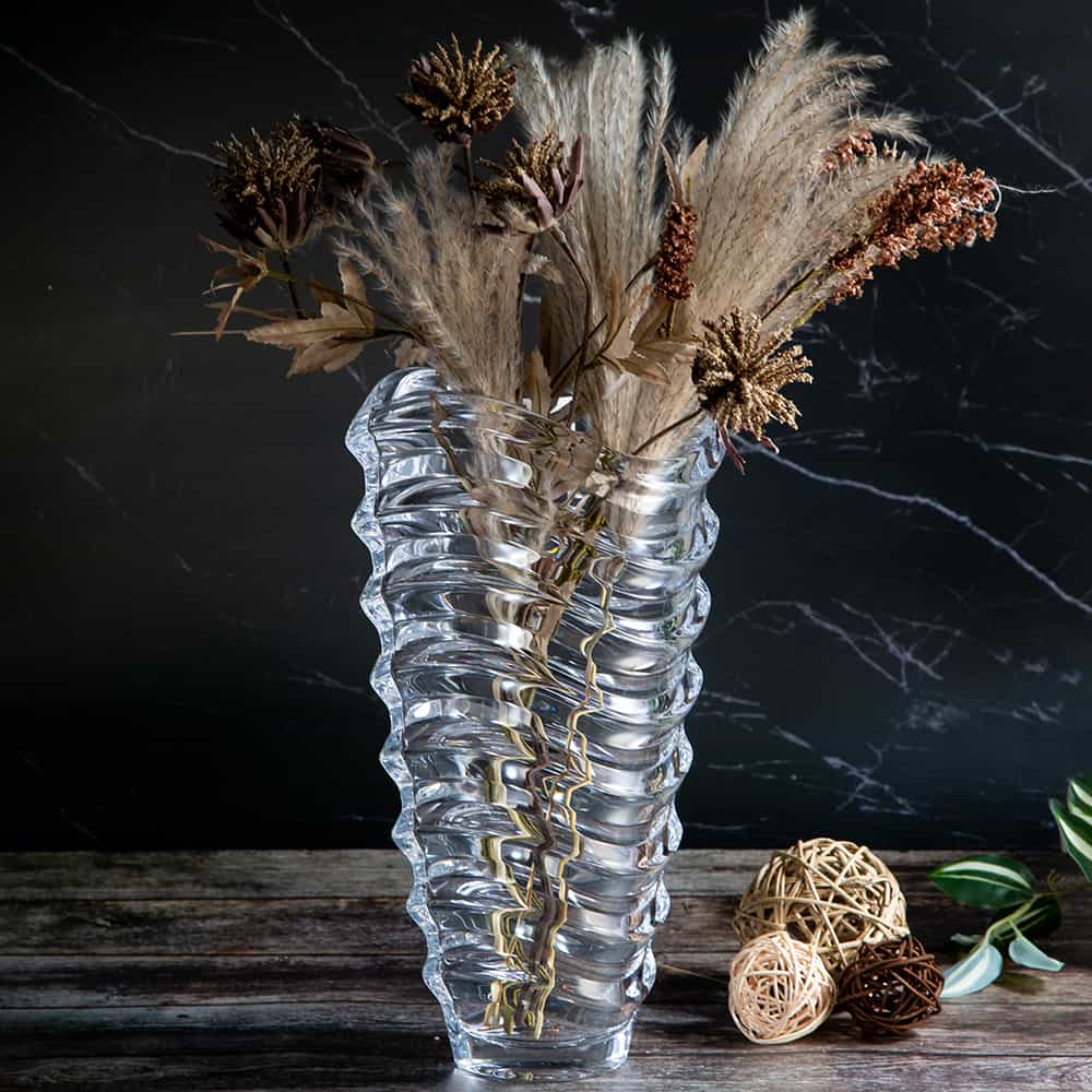 Vase from the "Wave" set with original design. Stylish and elegant present suitable for every home. It is offered in a luxurious dark blue box.