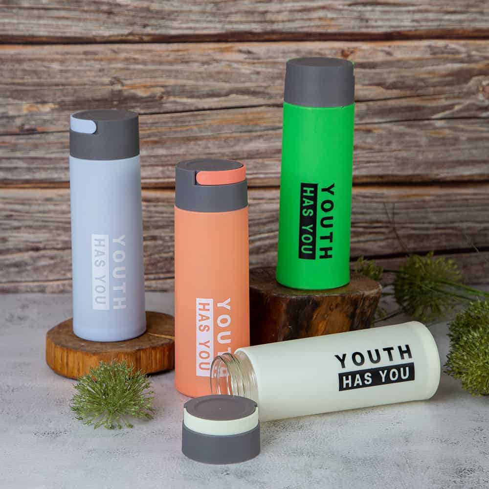 Water bottle - Youth. Bottle with screw cap and plastic handle. Available in several different variants. Please select your preference when ordering.