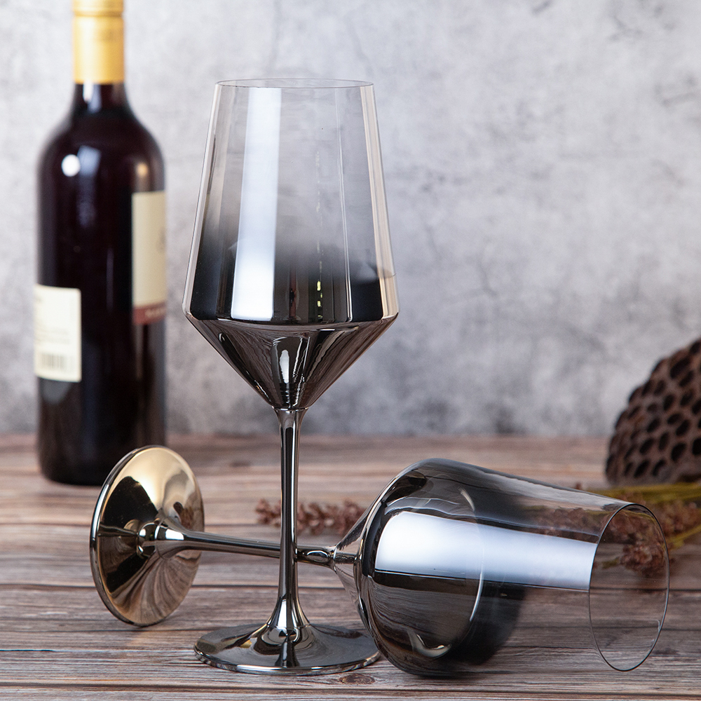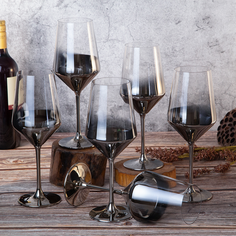 Set of white wine glasses containing six glasses with an original design. Offered in a box.
